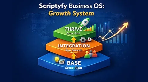 BIT (Base–Integration–Thrive) লেয়ারের উপর ভিত্তি করে তৈরি SCRIPTIFY ফ্রেমওয়ার্ক ব্যবহার করে ScriptyfyOS ব্যবসার ভিশন, ফাইন্যান্স, অপারেশন, টিম, ব্র্যান্ডিং, সেলস ও গ্রোথ—সবকিছুকে একীভূত করে একটি self-running, scalable ও owner-independent সিস্টেমে রূপান্তর করে।